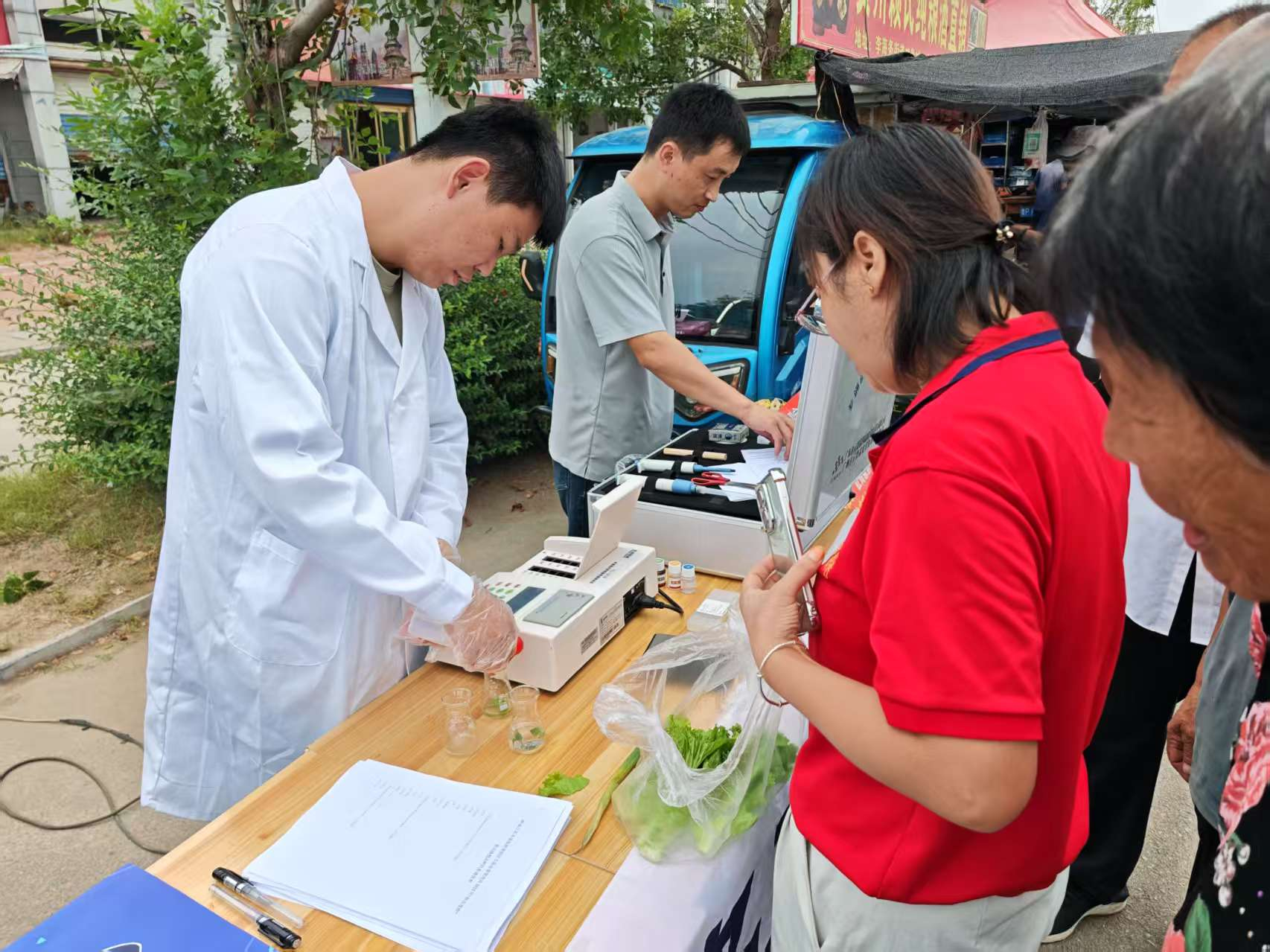 9月16日,聊城市市场监管局结合度假区市场监管局正在于集镇开展“你点我检 办事惠平易近生”进大集勾当。工做人员操纵快检设备,对消费者自动送检的蔬菜、生果等食用农产物,并及时公示成果,接管群众监视。同时,法律人员向商户和市平易近普及食物平安学问,激励群众积极参取“你点我检”办事惠平易近生问卷查询拜访。本次勾当共领受群众送检食物15批次,检测成果就地向群众进行了反馈和公示。